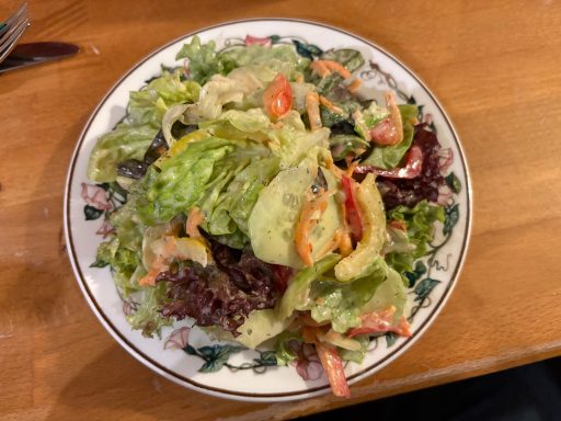 Bei unserem Eintreffen war der Gastwirt in heller Aufruhr. Der Grund war, dass sich für den Nebenraum eine Gruppe von 10 Personen angemeldet hatten. Diese Gruppe kam dann aber mit knapp 40 Personen! Das ist natürlich eine Unverschähmtheit dem Gastgeber gegenüber! Bei einer solchen Personenzahl und entsprechender Anmeldung hätte er personell anders vorplanen können und müssen. So musste er mit seiner einen Bedienung die ganze Meute und das restliche Tagesgeschäft bedienen. Dennoch hat das ganze dann wider Erwarten recht gut funktioniert und bekommt von mir vorab schon mal einen Sonderpunkt!